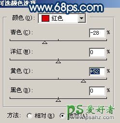 10、创建可选颜色调整图层,对红色进行调整,参数设置如图16,效果如图17。