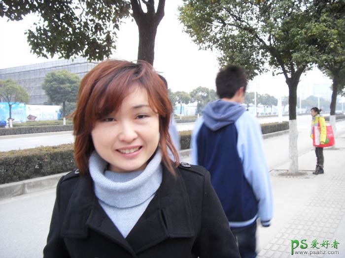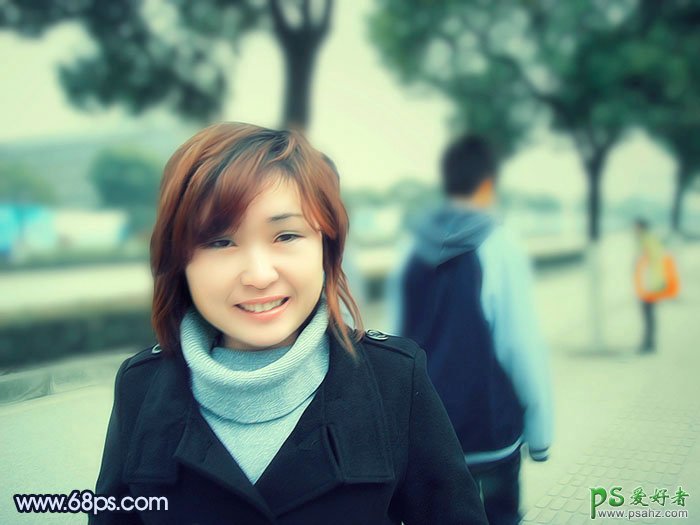 PS美女照片调色实例教程,photoshop调出青春黄调柔美少女照片,原图素材背景部分比较单调,有点泛白。调色的时候先要把背景部分加上一些底色。然后再整体调整颜色。如果觉得背景部分太杂乱的话可以适当模糊处理。