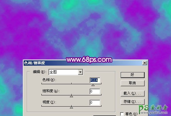 3、按Ctrl + U 调整色相/饱和度,参数及效果如下图。