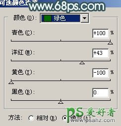 1、打开原图素材,创建可选颜色调整图层,对绿色进行调整,参数设置如图1,效果如图2。