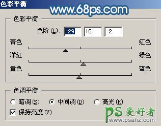 10、创建色彩平衡调整图层,参数设置如图19,效果如图20。