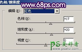 1、打开原图素材,创建色相/饱和度调整图层,对红色进行调整,参数设置如图1,效果如图2。