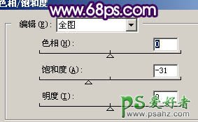 5、创建色相/饱和度调整图层,适当降低图层饱和度,参数设置如图7,效果如图8。