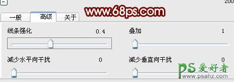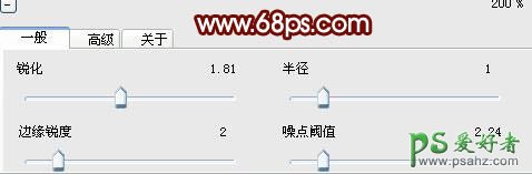 7、ctrl+alt+shift+E盖印,发现头发开叉太多,复制一层,用topaz滤镜锐化一下。数值如下: