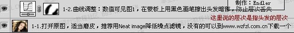 1、打开原图,适当的磨皮,可以使用:Neat image外挂滤镜磨皮。没有这款滤镜的可以去网上下载。 2、创建曲线调整图层,参数设置如下图。确定后用黑色画笔把头发暗部擦出来,防止层次丢失。