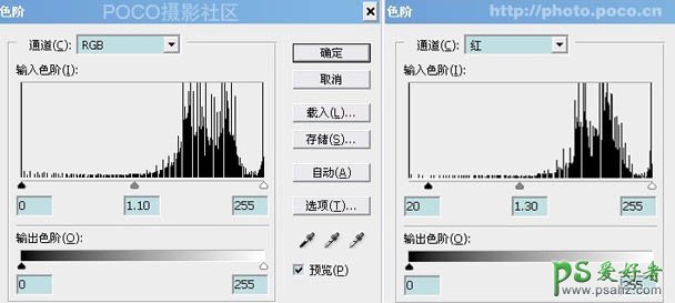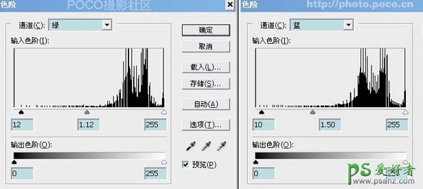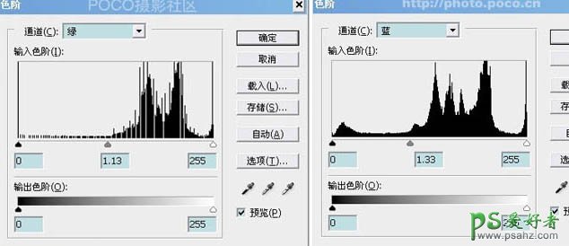 3、再按Ctrl + L 调整色阶,对各个通道进行调整,参数设置如下图: