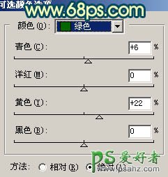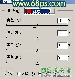 5、创建可选颜色调整图层,会红色及绿色进行调整,参数设置如图8,9,效果如图10。