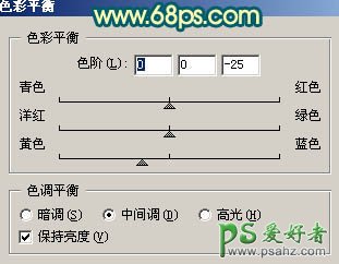 4、创建色彩平衡调整图层,参数设置如图6,确定后用黑色画笔把衣服部分擦出来。