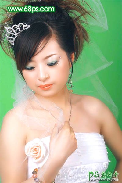 PS美女照片调色教程实例,利用PS给婚片美女进行调出让婚片再现光彩,原图素材色彩有点沉,背景和人物肤色不太融合。调色的时候可以把背景部分调亮一点,人物部分可以稍加润色,色调尽量用鲜艳一点的颜色,这样才能突出人物的青春美。 最终效果 原图