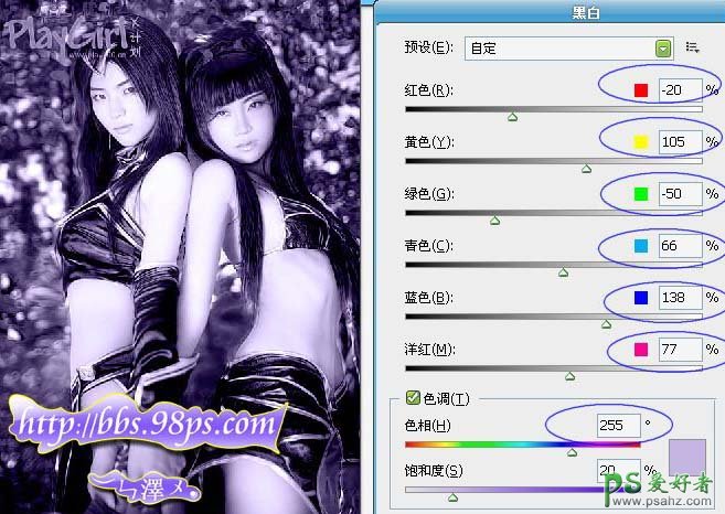 今天我们来学习一篇PS美女艺术照调色教程实例,photoshop调出单色调出美女艺术照特效,单色照片的调色方法非常多,下面的教程介绍用黑白工具来调。这个调色工具需要CS3及以上版本才有。如果你的PS版本不够高的话可以用其它方法来调。 最终效