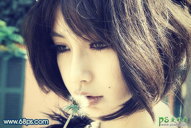 今天我们来学习一篇漂亮的PS美女艺术照调色实例教程,photoshop调出青黄色彩美女人像艺术效果,原图素材有点偏暗,色彩构成比较少。不过像素很好,比较容易处理。只要稍微把背景部分的绿色调成青色,再整体调亮一点,并用曲线加上一点淡黄色即可。