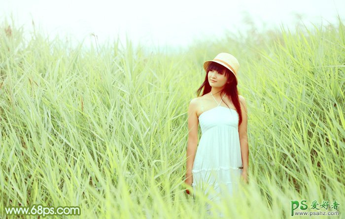 今天我们来学习一篇实用的PS美女照片调色实例教程,照片后期调色教程,photoshop调出甜美色彩田野小女子写真照,素材图片有点偏暗,不过整体非常清爽。处理的时候可以适当把背景颜色调淡,并加入一些淡黄色及淡青色,。人物部分再适当调红润一点。这样画面会甜美很多。