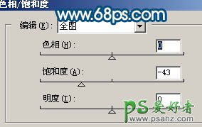 10、创建色相/饱和度调整图层,参数设置如图24,确定后用灰色画笔把人物脸部擦出来,效果如图25。