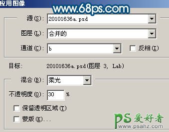 4、新建一个图层,盖印图层,执行:图像 > 应用图像,参数设置如图12,效果如图13。