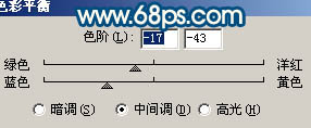 5、创建色彩平衡调整图层,参数设置如图14,确定后把图层混合模式改为“柔光”,图层不透明度改为:60%,用黑色画笔把人物部分擦出来,效果如图15。