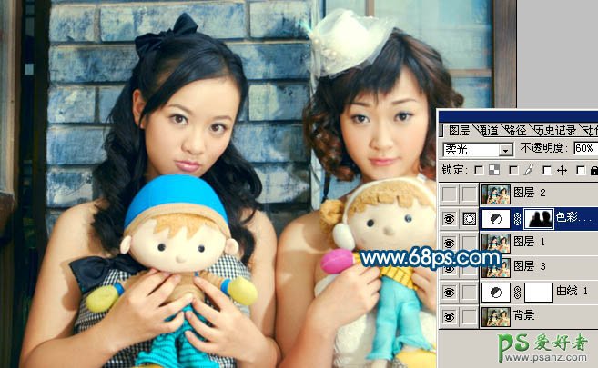 巧用PS给一对可爱的小姐妹调出淡彩中性色