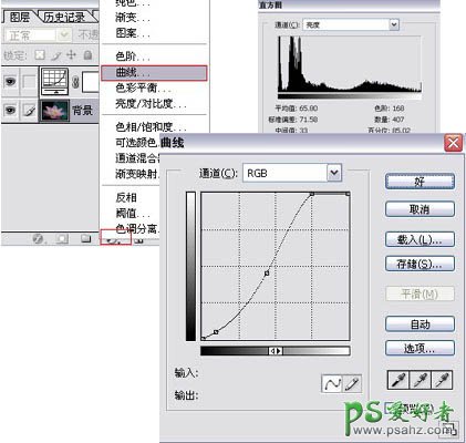 1、打开图片,首先影调调整,曲线调整图层。 (从直方图来看图片的高光部分基本没有象素,所以我们调整曲线为图片加亮,加亮的同时我压制了图片的暗部,增强了影调的对比,为配合高光与暗部的调整又将中间调适当上调) 温馨提示:在调整的过程中根据不同的需要配合图层蒙板,饱和度,色彩平衡等工具一起使用哦,大家要学会针对不同的图片灵活运用各种工具,小编只能举例来教学,大家必须学会举一反三。
