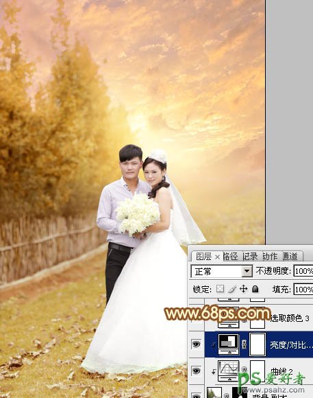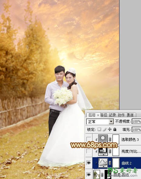 photoshop调出柔美的霞光情侣婚纱照特效