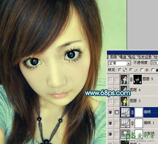 4、把曲线调整图层复制一层,图层不透明度改为:30%,效果如下图。