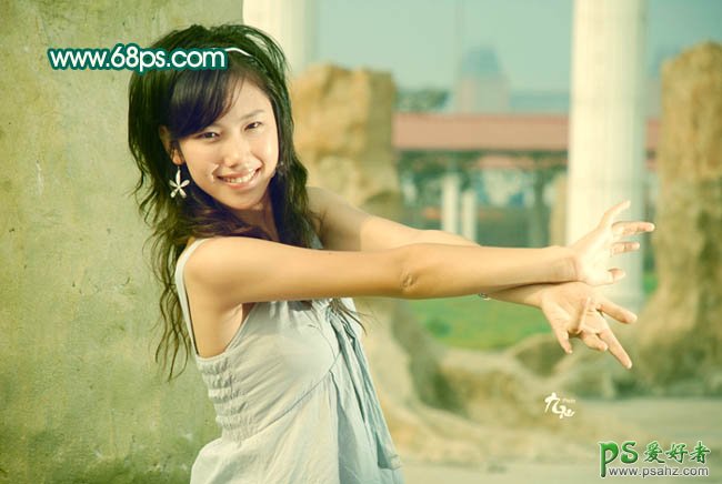 PS美女照片调色教程实例,少女艺术照调色实例教程,photoshop给外景美少女艺术照调出清爽的蜜糖色,甜美色一般以粉色为主,为了突出这种效果,背景一般也要调成淡淡的青色或绿色。这样画面看上去才清爽,人物显得更加甜美。 最终效果 原图 1