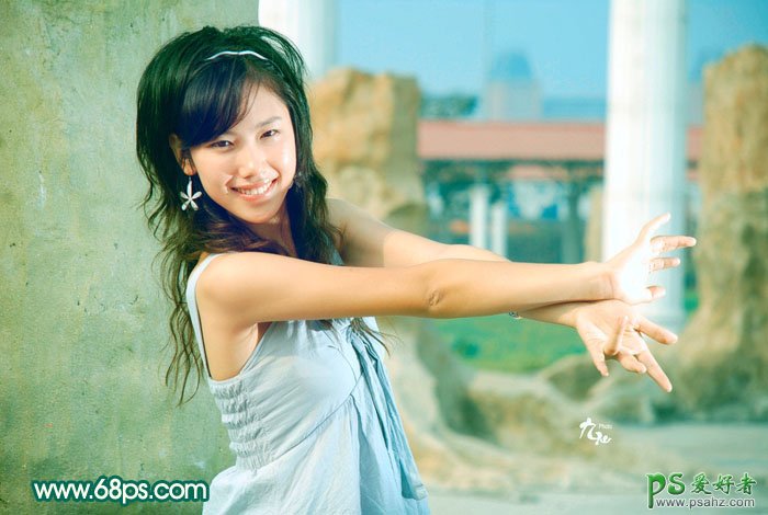 PS美女照片调色教程实例,少女艺术照调色实例教程,photoshop给外景美少女艺术照调出清爽的蜜糖色,甜美色一般以粉色为主,为了突出这种效果,背景一般也要调成淡淡的青色或绿色。这样画面看上去才清爽,人物显得更加甜美。