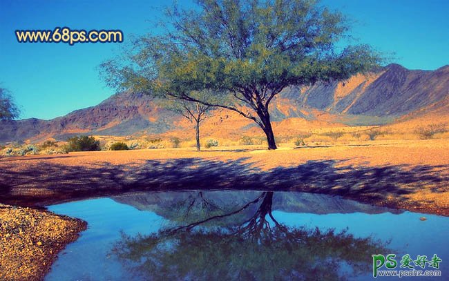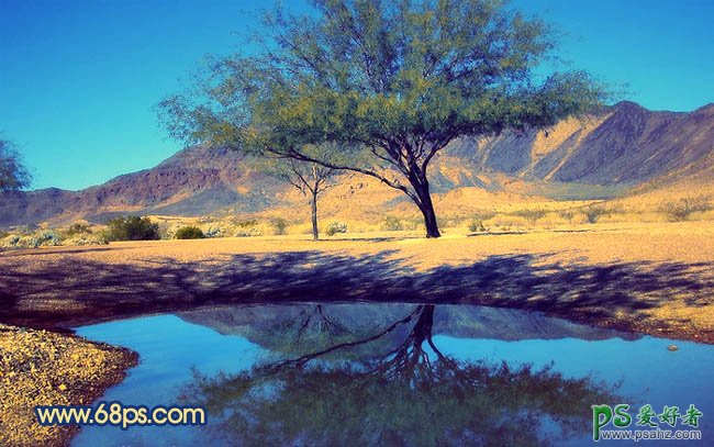 PS风景照调色实例教程,photoshop调出冷暖效果绚丽秋景风景照片,原图素材看上去有种荒漠的感觉。不过色调还不够鲜艳。调色的时候可以适当把沙子部分的颜色调成金黄色,天空部分再适当调蓝一点,效果就突出很多。 最终效果 原图 1、打开原图