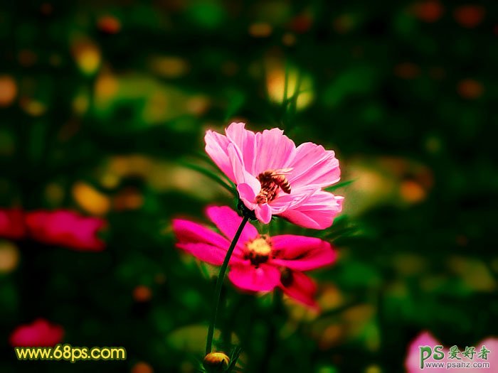 今天我们来学习一篇PS漂亮花卉图片调色实例教程,photoshop调出色彩斑斓的花朵图片特效,本教程介绍暗调风景照片调色方法。原图素材看上去非常不错,不过花朵部分还不够突出。处理的时候需要把背景部分稍微调暗并模糊处理,这样花朵看上去就非常显眼。