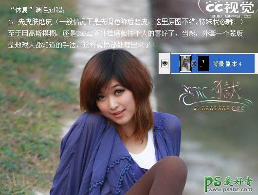 (一般情况下是先调色后磨皮,这里原图不错不需要调色)。磨皮方法自选。