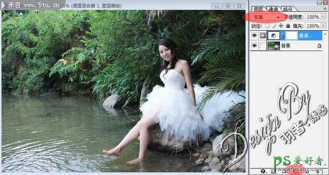 3、打开图层,新建调整图层〈通道混合器,按确定,并把图层模式改为变亮,效果如图所示)。