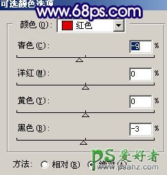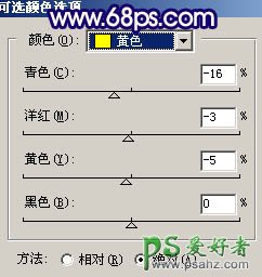 10、创建可选颜色调整图层,参数设置如图17,18,效果如图19。