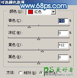 1、打开原图,创建可选颜色调整图层,分别对红、黄、绿进行调整,参数设置如图1 - 3,效果如图4。