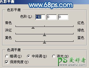 3、创建色彩平衡调整图层,参数设置如图7,效果如图8。