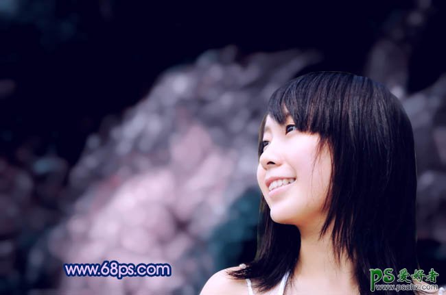 PS美女照片调色教程实例,photoshop调出蓝紫色大美女艺术照,美女艺术照后期调色实例教程,原图素材的背景部分不太好看。如果不想换背景的话,用一些滤镜做出一些非常梦幻的效果。再适当调色并压暗。背景部分就会好看很多。后期给人物调整下颜色,
