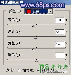 9、执行:图像 > 调整 > 可选颜色,对红色进行调整,参数设置如图17,效果如图18。