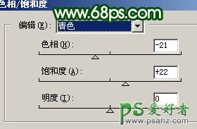 5、创建色相/饱和度调整图层,选择青色,参数设置如图12,确定后用黑色画笔在蒙版上把人物脸部擦出来,效果如图13。