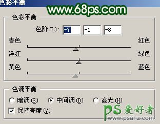 7、创建色彩平衡调整图层,参数设置如图16,效果如图17。