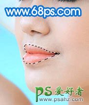 9、新建一个图层,盖印图层。用套索工具把人物嘴唇部分选出来,适当羽化后,按Ctrl + B 调整色彩平衡,适当调红一点,如下图。
