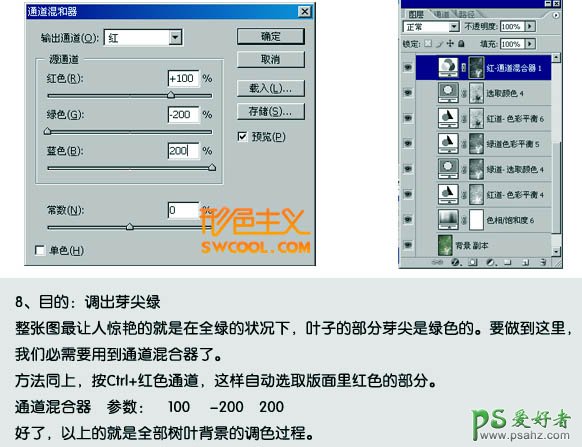 8、按Ctrl + Alt + 1 调出红色通道高光选区,创建通道混合器调整图层,对红色进行调整,参数设置如下图。