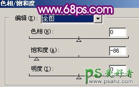 2、创建色相/饱和度调整图层,适当降低全图的饱和度,参数设置如图2,效果如图3。