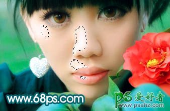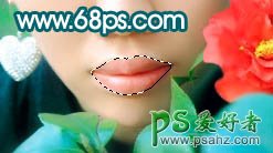 13、用钢笔工具把嘴唇部分选取出来,适当羽化1个像素后创建色彩平衡调整图层,稍微调红一点。