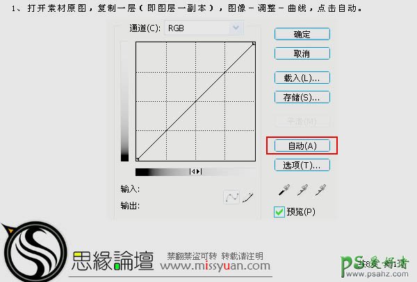 1、打开原图素材,按Ctrl + J 把背景图层复制一层,按Ctrl + M 调整曲线,选择“自动”。