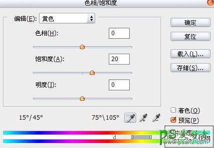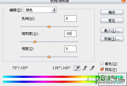 2、Ctrl+U执行色相/饱和度。参数如下: