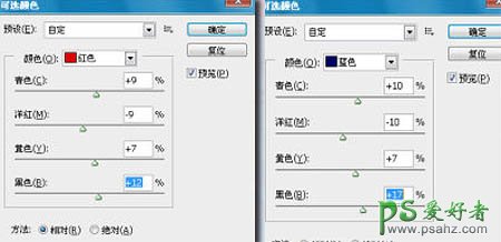 1、打开原图素材,把背景图层复制一层,选择菜单:图像 > 调整 > 可选颜色,分别对红色及蓝色调整,参数设置如图2,效果如图3。