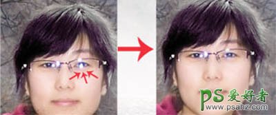 4、新建一个图层,按Ctrl + Alt + Shift + E 盖印图层。选择涂抹或修补工具把眼镜底部的高光部分涂掉。由于素材图比较小,这一步可以省略,效果如图10。