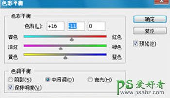 6、用钢笔工具把人物的嘴唇部分抠出来,转为选区后羽化1个像素,然后创建色彩平衡调整图层,参数设置如图12,效果如图13。