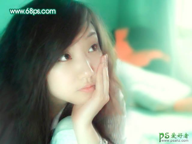 10、新建一个图层,盖印图层。选择涂抹工具把头发部分涂顺畅,适当给人物磨下皮,效果如下图。