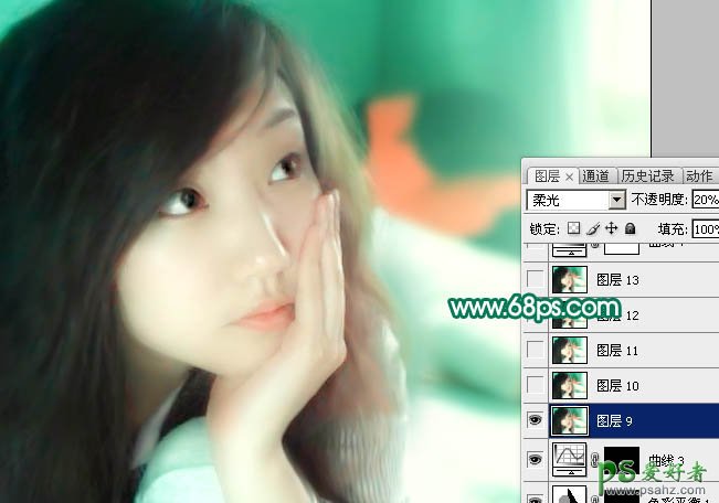 11、新建一个图层,盖印图层。执行:滤镜 > 模糊 > 高斯模糊,数值为5,确定后把图层混合模式改为“柔光”,图层不透明度改为:20%,效果如下图。