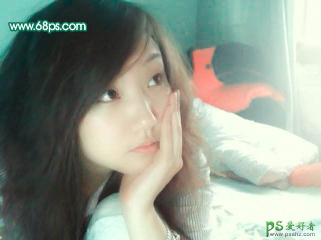 PS美少女调色教程实例,PS给漂亮女生艺术照调出淡雅的效果,清纯少女写真照制作,本教程的色调以青绿色及橙红色为主。这组颜色也比较好搭配。调色的时候把背景部分调成青绿色,肤色部分则调成橙红色。这样人物部分看上去就比较甜美。如果背景比较杂乱的话