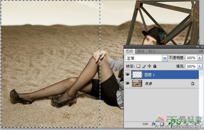 利用PS给沙滩上性感的黑丝袜少女调出唯美的暖色