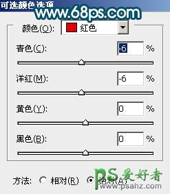 2、创建可选颜色调整图层,对红、黄调整,参数设置如图3,4,效果如图5。